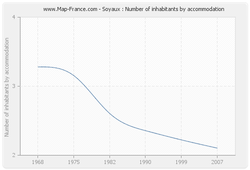 The number of inhabitants of Soyaux per housing was 2,10 in 2007.
