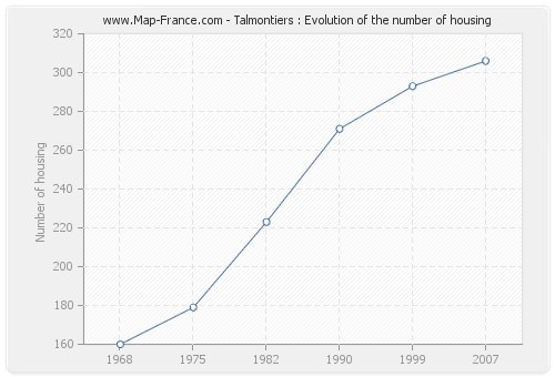 The number of housing of Talmontiers was 306 in 2007, 293 in 1999, 271 in 1990, 223 in 1982, 179 in 1975 and 160 in 1968.