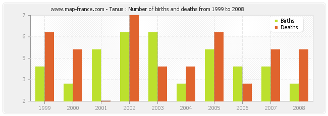 - Men inhabitants Tanus in 2007 were 275 - Women inhabitants in 2007 were 260