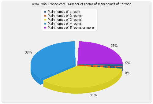 - Number of main homes of Tarrano of 1 room : 0 - Number of main homes of Tarrano of 2 rooms : 0 - Number of main homes of Tarrano of 3 rooms : 3 - Number of main homes of Tarrano of 4 rooms : 3 - Number of main homes of Tarrano of 5 rooms and more : 2 |