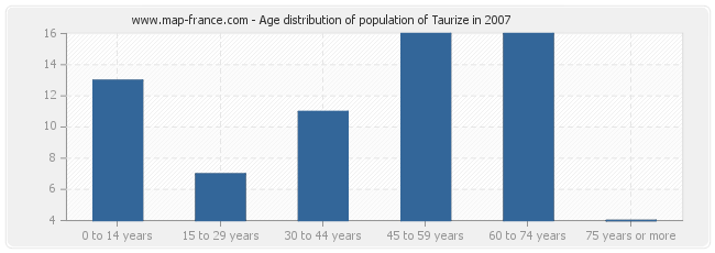 - Population of Taurize from 60 to 74 years : 16 inhabitants