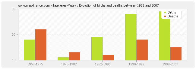 Tauxières-Mutry : evolution of births and deaths from 1968 to 2007