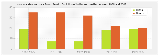 Taxat-Senat : evolution of births and deaths from 1968 to 2007