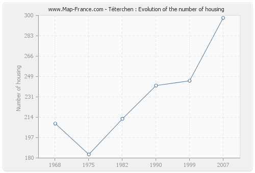 The number of housing of Téterchen was 298 in 2007, 245 in 1999, 241 in 1990, 213 in 1982, 183 in 1975 and 209 in 1968.