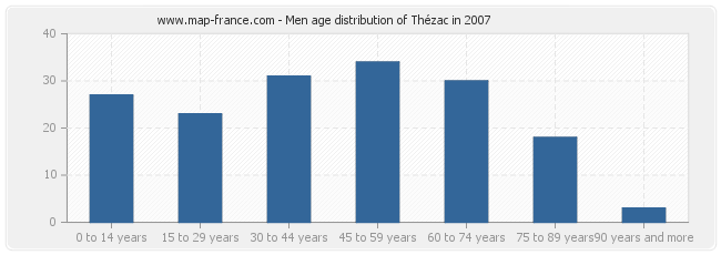 - Men inhabitants Thézac in 2007 were 164 - Women inhabitants in 2007 were 164