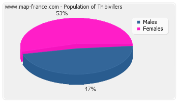- Men inhabitants Thibivillers in 2007 were 94 - Women inhabitants in 2007 were 107
