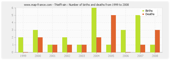 - Thieffrain in 2008 : 1 births and 3 deaths