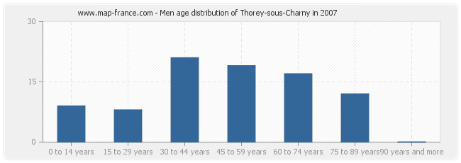 - Thorey-sous-Charny men inhabitants from 30 to 44 years : 21