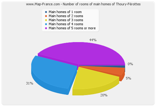 - Number of main homes of Thoury-Férottes of 1 room : 0 - Number of main homes of Thoury-Férottes of 2 rooms : 13 - Number of main homes of Thoury-Férottes of 3 rooms : 49 - Number of main homes of Thoury-Férottes of 4 rooms : 49 - Number of main homes of Thoury-Férottes of 5 rooms and more : 105 |
