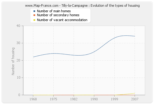 The number of housing of Tilly-la-Campagne was 35 in 2007, 33 in 1999, 25 in 1990, 23 in 1982, 24 in 1975 and 22 in 1968.