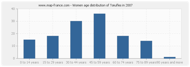 - Tœufles women inhabitants from 45 to 59 years : 36