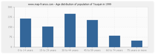 - Population of Touquin from 30 to 44 years : 249 inhabitants