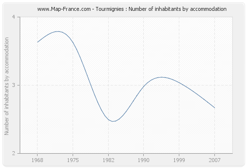 - Number of inhabitants per housing of Tourmignies in 1968 : 3,63