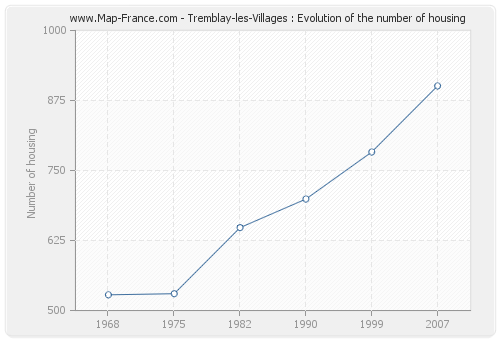 The number of housing of Tremblay-les-Villages was 901 in 2007, 783 in 1999, 699 in 1990, 648 in 1982, 530 in 1975 and 528 in 1968.