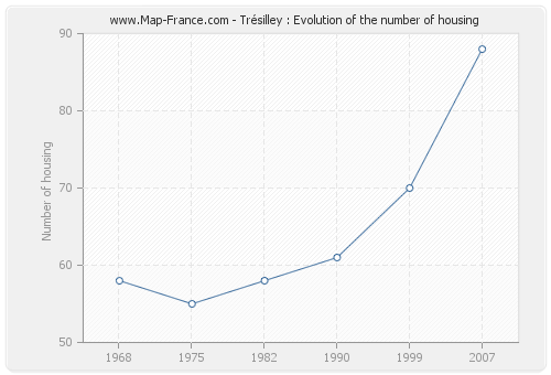 The number of housing of Trésilley was 88 in 2007, 70 in 1999, 61 in 1990, 58 in 1982, 55 in 1975 and 58 in 1968.