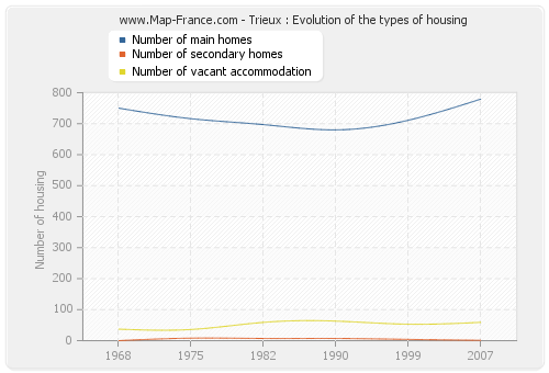 The number of housing of Trieux was 839 in 2007, 768 in 1999, 750 in 1990, 763 in 1982, 760 in 1975 and 787 in 1968.