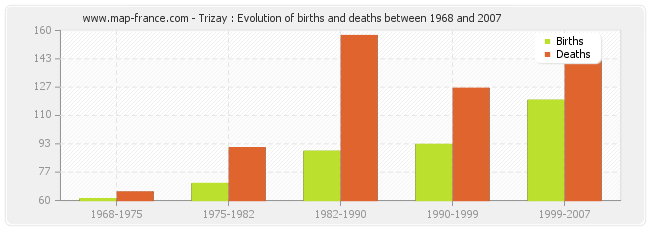 - Population of Trizay from 60 to 74 years : 143 inhabitants