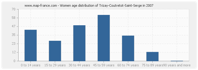 - Trizay-Coutretot-Saint-Serge women inhabitants from 45 to 59 years : 62