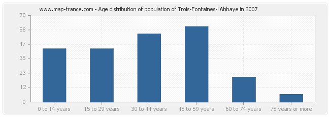 - Population of Trois-Fontaines-l'Abbaye from 45 to 59 years : 61 inhabitants
