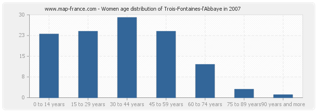 - Trois-Fontaines-l'Abbaye women inhabitants from 30 to 44 years : 29