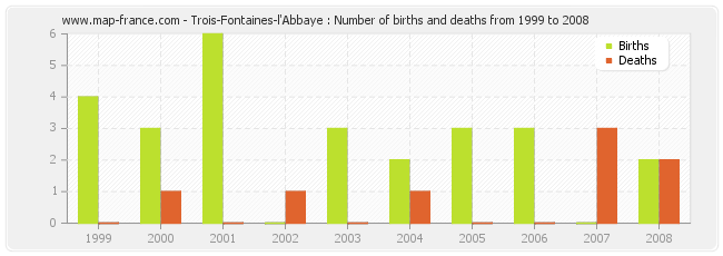 - Trois-Fontaines-l'Abbaye in 2008 : 2 births and 2 deaths