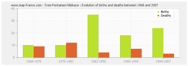 Trois-Fontaines-l'Abbaye : evolution of births and deaths from 1968 to 2007