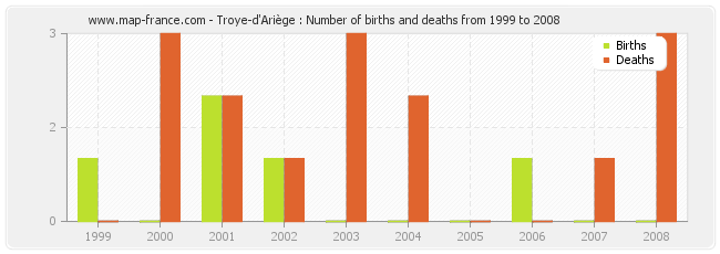 Troye-d'Ariège : births and deaths from 1999 to 2008