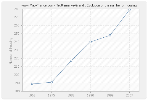 The number of housing of Truttemer-le-Grand was 279 in 2007, 248 in 1999, 240 in 1990, 217 in 1982, 191 in 1975 and 189 in 1968.