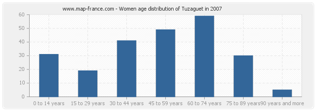 - Tuzaguet women inhabitants from 60 to 74 years : 59