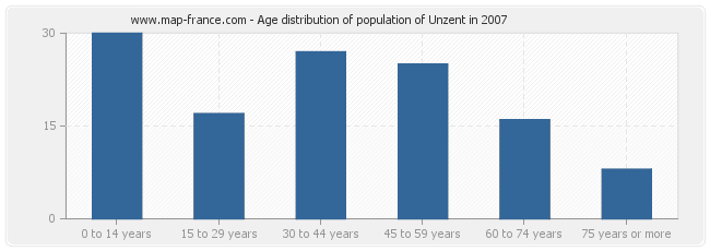 - Population of Unzent from 0 to 14 years : 30 inhabitants