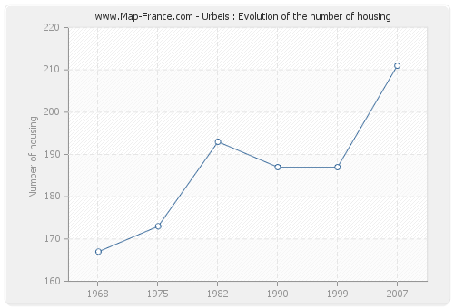 The number of housing of Urbeis was 211 in 2007, 187 in 1999, 187 in 1990, 193 in 1982, 173 in 1975 and 167 in 1968.