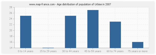 - Population of Urbise from 0 to 14 years : 25 inhabitants