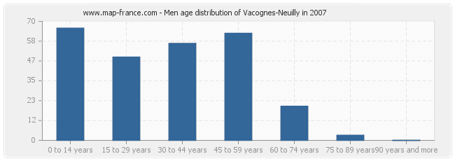 Men population distribution of Vacognes-Neuilly by age in 2007 :
