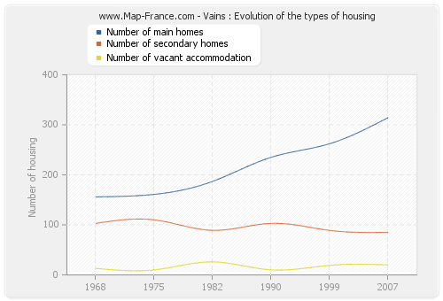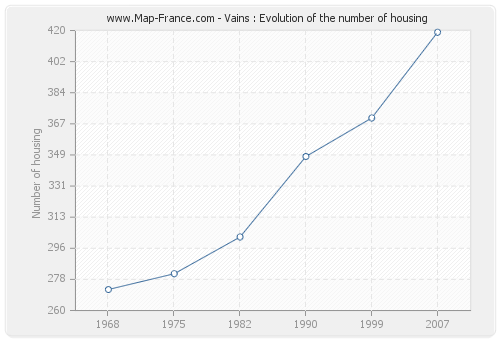 The number of housing of Vains was 419 in 2007, 370 in 1999, 348 in 1990, 302 in 1982, 281 in 1975 and 272 in 1968.