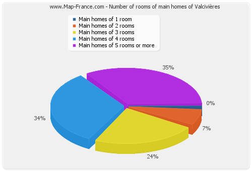- Number of main homes of Valcivières of 1 room : 0 - Number of main homes of Valcivières of 2 rooms : 7 - Number of main homes of Valcivières of 3 rooms : 23 - Number of main homes of Valcivières of 4 rooms : 23 - Number of main homes of Valcivières of 5 rooms and more : 34 |