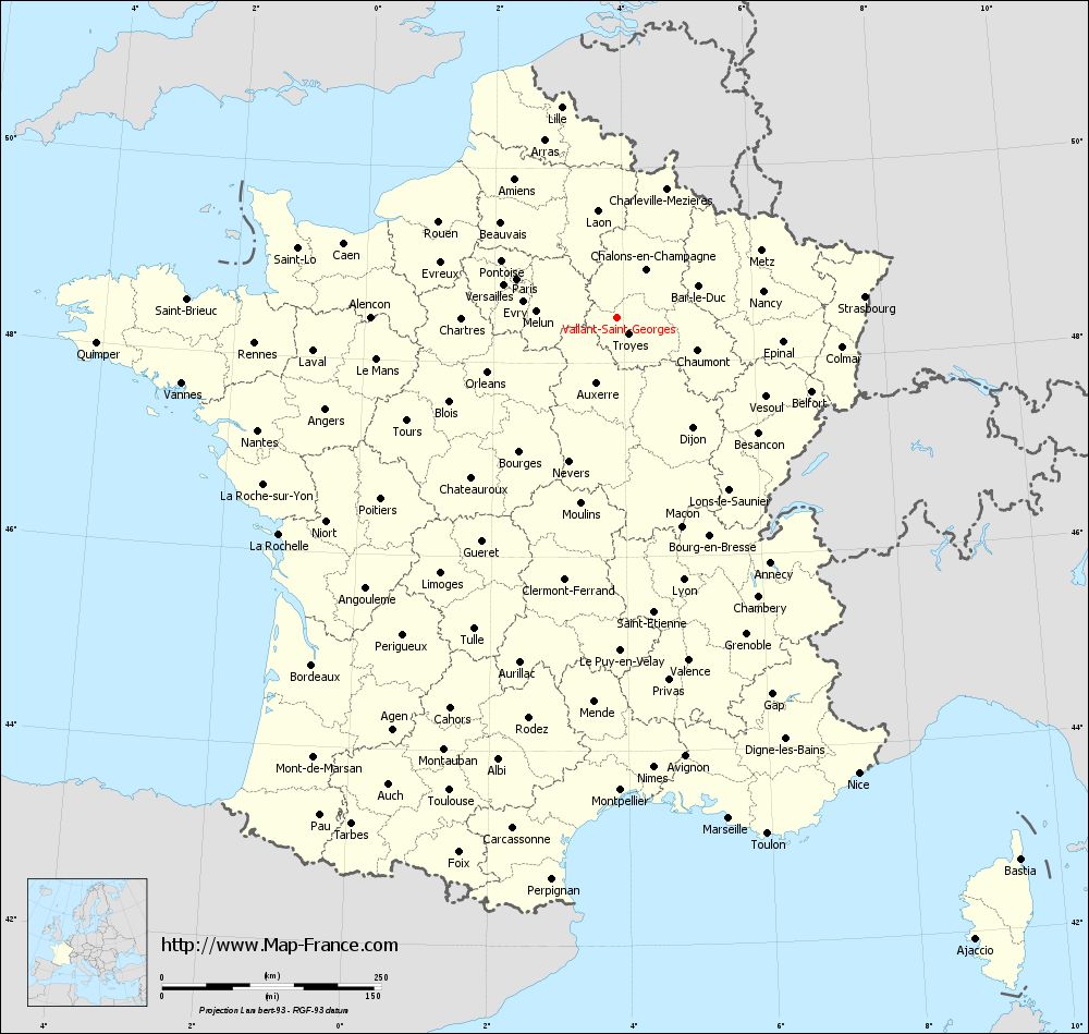 Map of Vallant-Saint-Georges with departments and prefectures