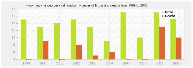 - Valmondois in 2008 : 16 births and 10 deaths