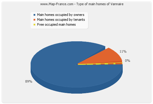 - Number of main homes of Vannaire occupied by owners : 17 - Number of main homes of Vannaire occupied by tenants : 2 - Number of main homes of Vannaire occupied free of charge : 0 |