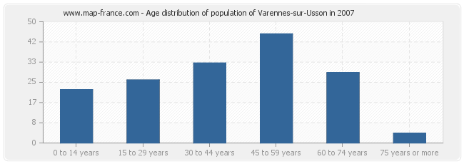 - Population of Varennes-sur-Usson from 45 to 59 years : 45 inhabitants