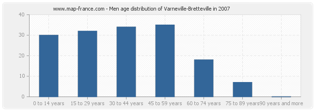 Men population distribution of Varneville-Bretteville by age in 2007 :