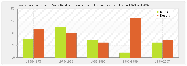 Vaux-Rouillac : evolution of births and deaths from 1968 to 2007
