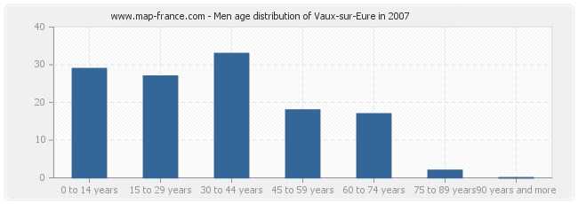 - Vaux-sur-Eure men inhabitants from 30 to 44 years : 33