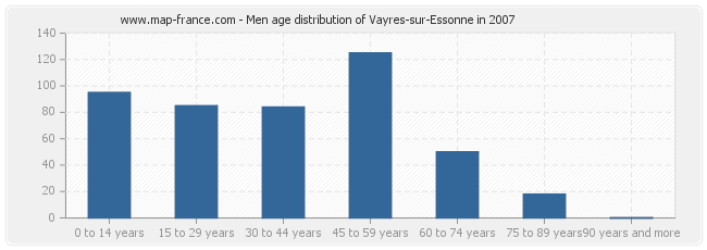 - Vayres-sur-Essonne men inhabitants from 45 to 59 years : 125