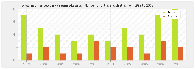 Velesmes-Essarts : births and deaths from 1999 to 2008