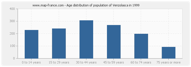 - Population of Venzolasca from 30 to 44 years : 306 inhabitants