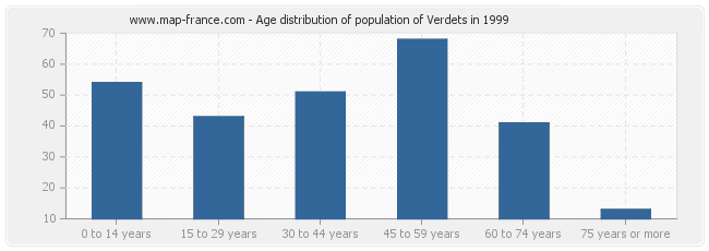 - Population of Verdets from 45 to 59 years : 68 inhabitants