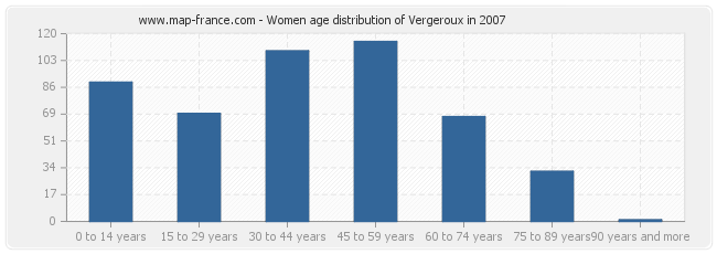 - Vergeroux women inhabitants from 45 to 59 years : 115