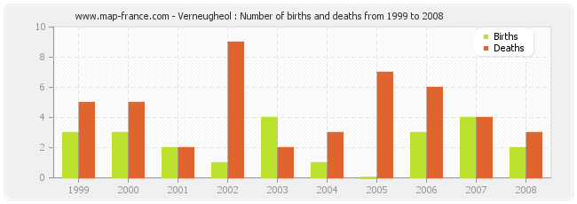 Verneugheol : births and deaths from 1999 to 2008