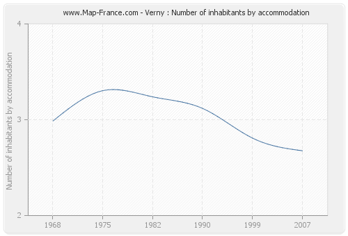 The number of inhabitants of Verny per housing was 2,68 in 2007.