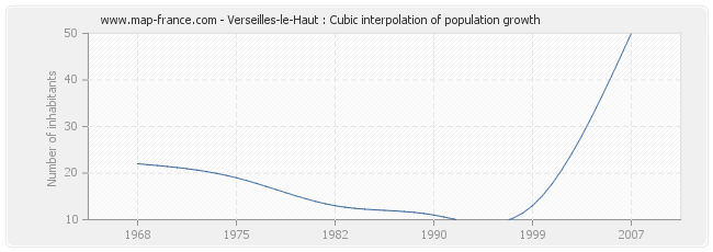 Population of Verseilles-le-Haut was 50 inhabitants in 2007, 13 inhabitants in 1999, 11 inhabitants in 1990, 13 inhabitants in 1982, 19 inhabitants in 1975 and 22 inhabitants in 1968.